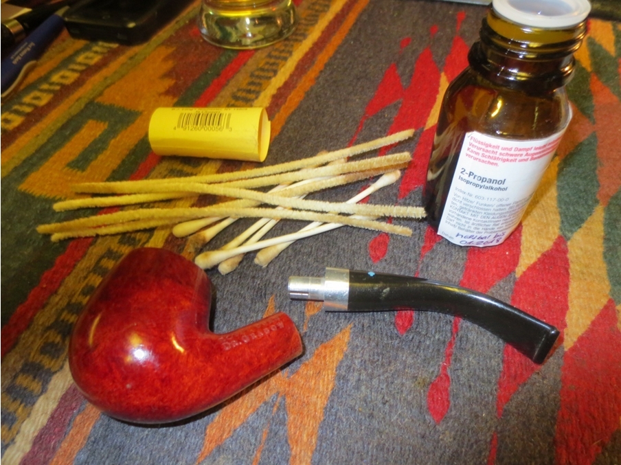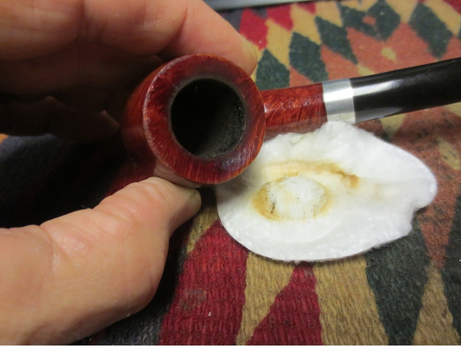 I scraped the tobacco out of the bowl, threw away the paper filter and then cleaned out the shank and stem with pipe cleaners, cotton swabs and isopropyl alcohol.