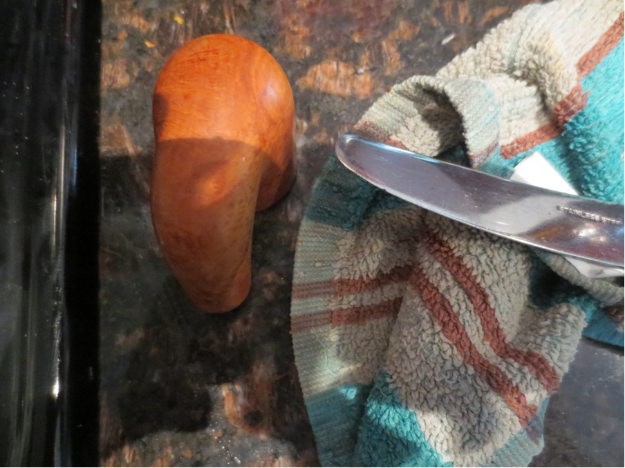I buffed the stem with red Tripoli to further remove the scratches left behind by the sandpaper. I took it back to the worktable and put it in the shank and took some photos.
