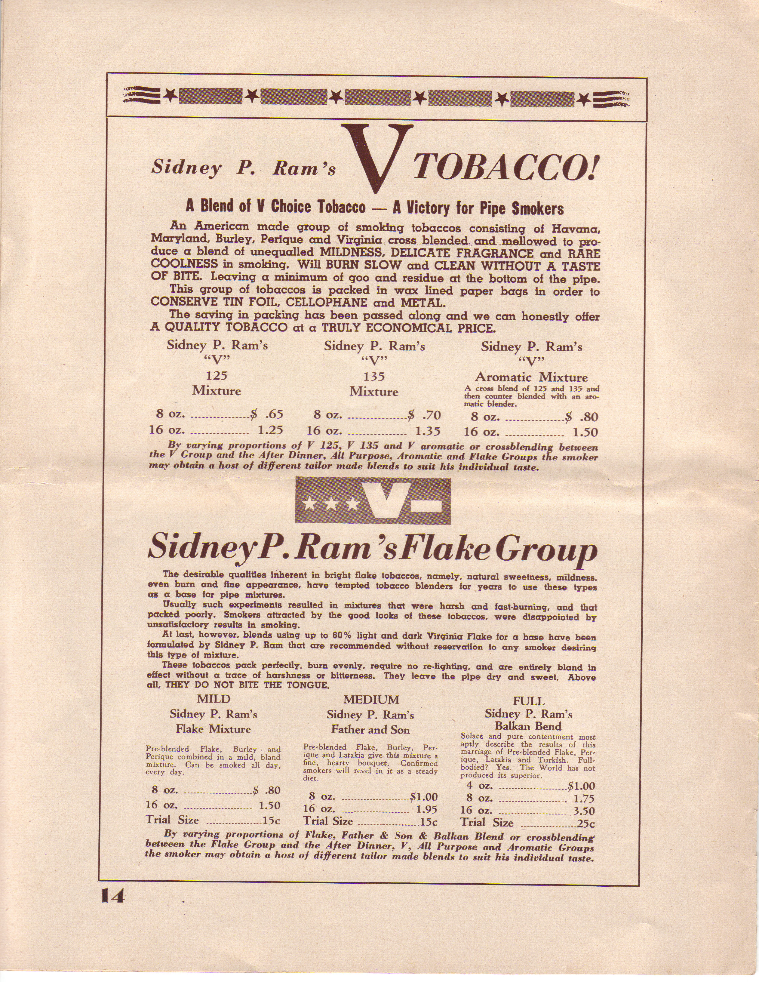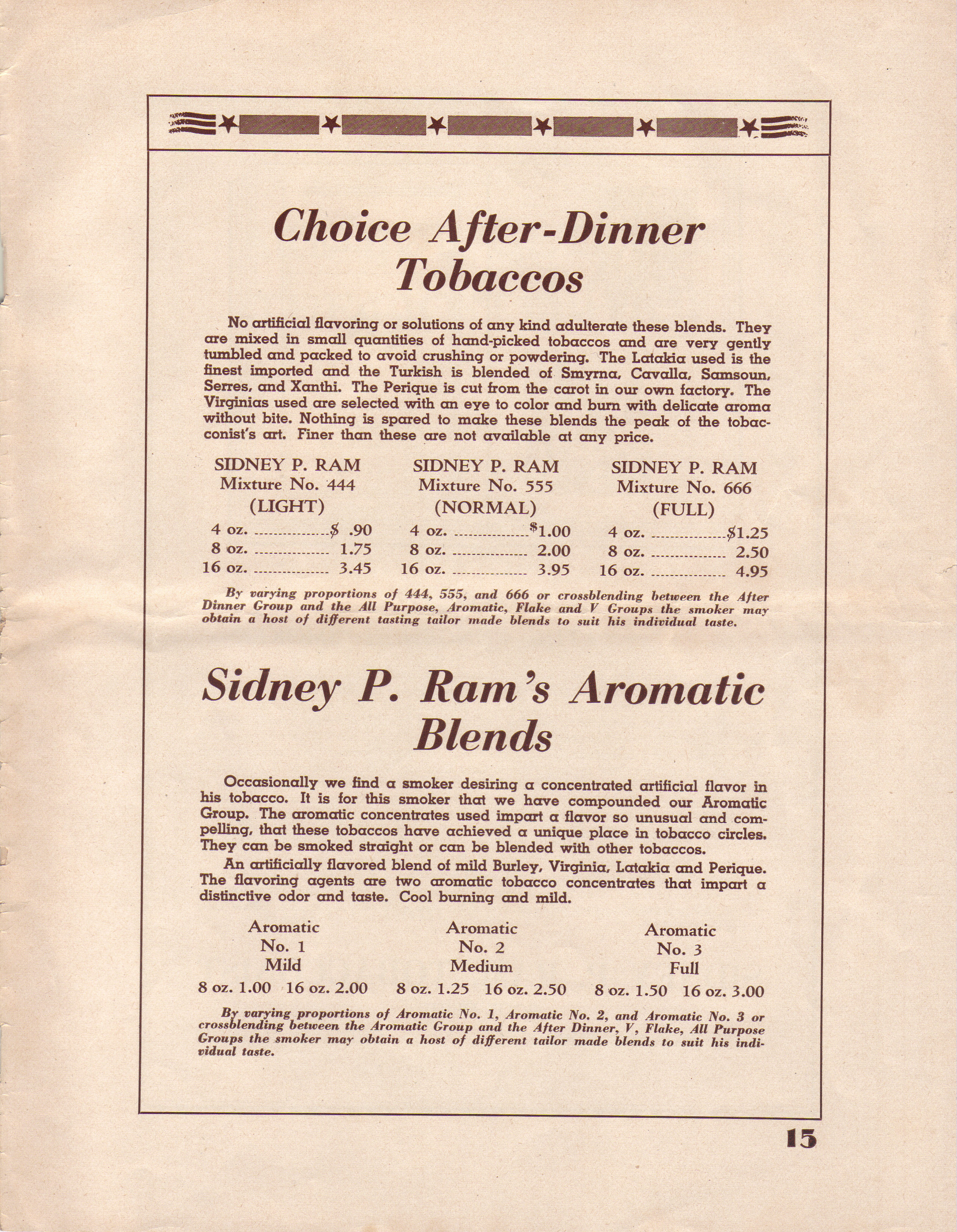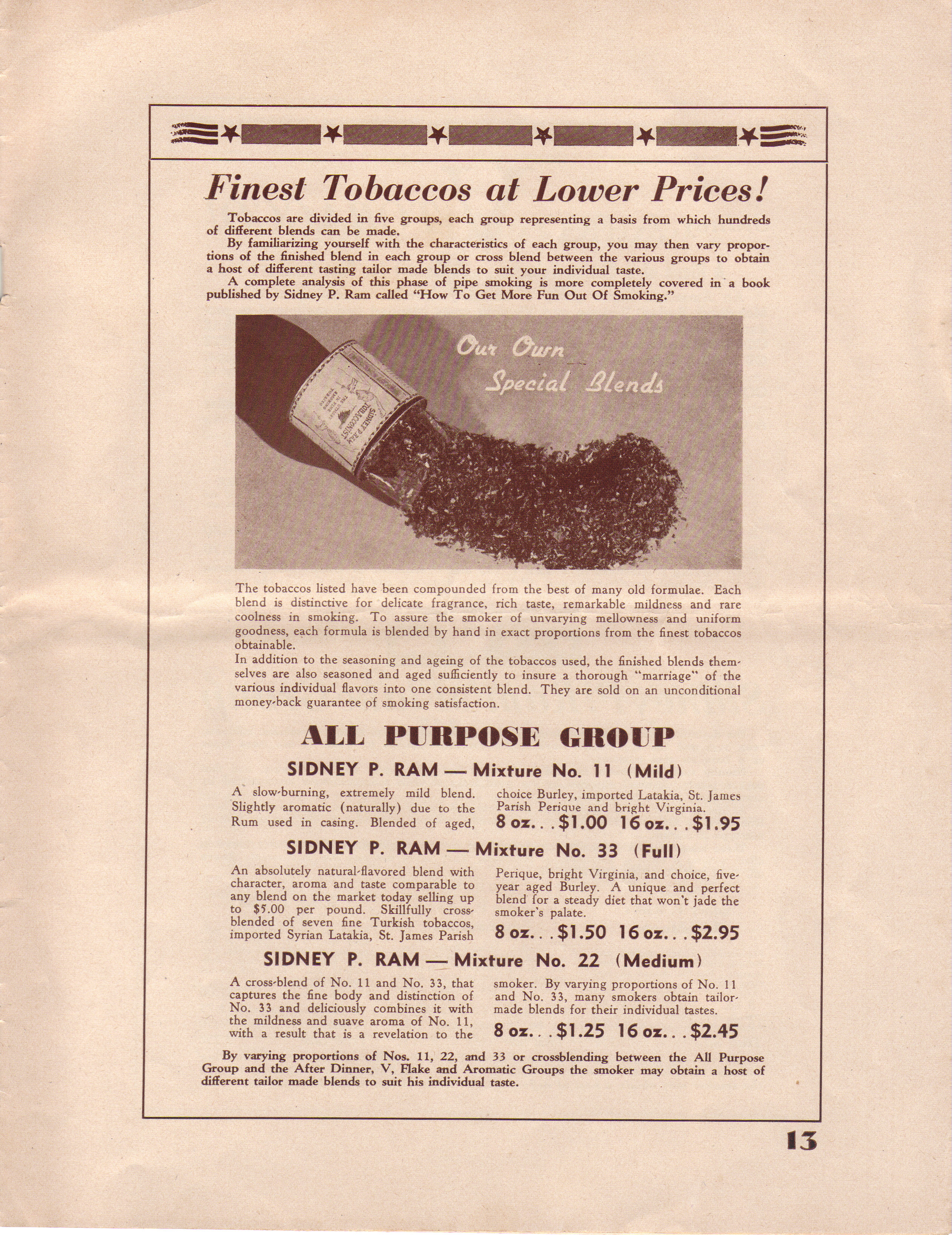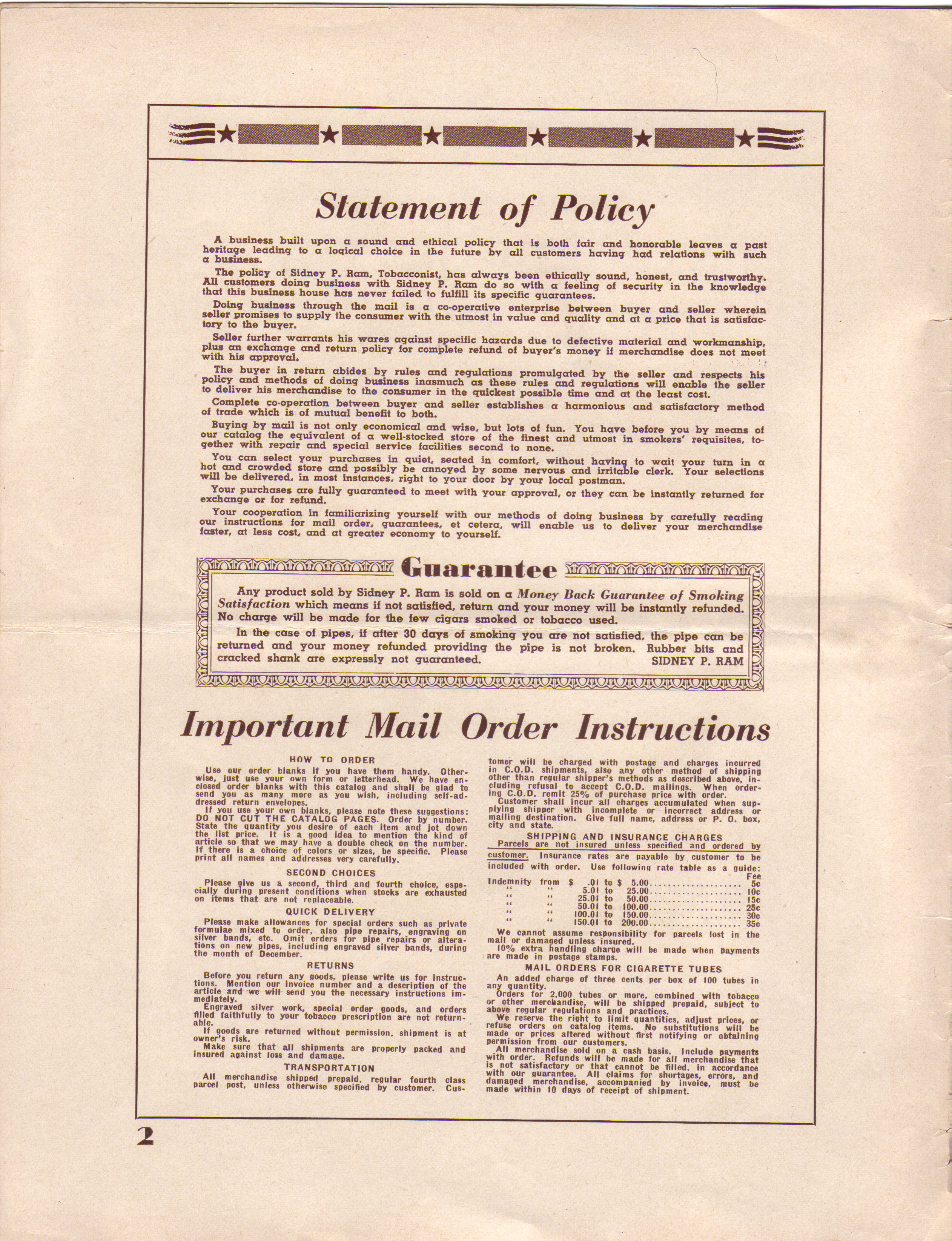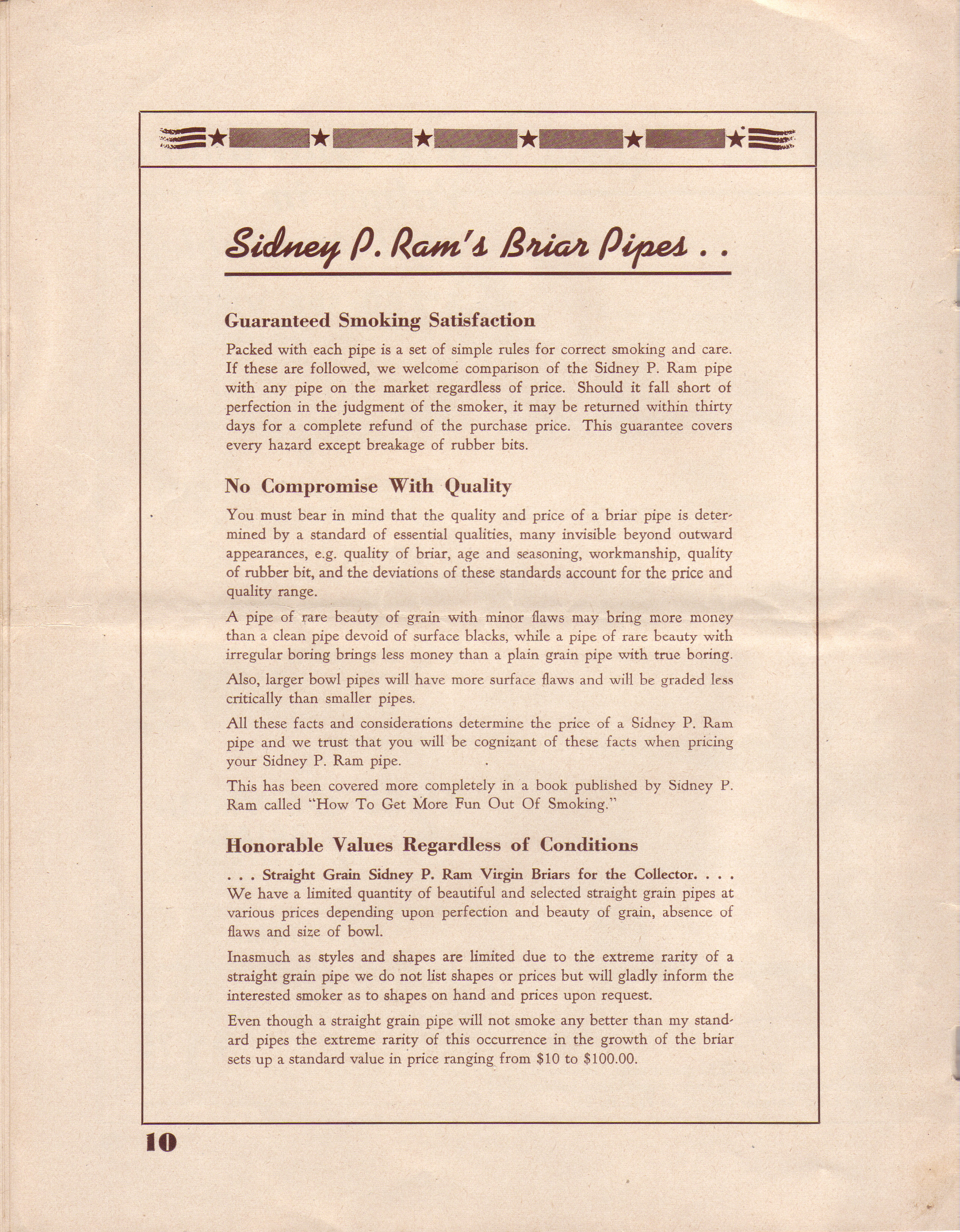 I contacted Ken Prevo who was mentioned later in the Pipedia article as we have corresponded on the various pipe forums that we both frequent. I asked his permission to post a copy of the 16 page catalog from the shop era that was referenced in the article. He graciously responded that I could post it here on rebornpipes in high resolution. I have done so here: https://rebornpipes.com/2015/05/22/are-you-getting-the-most-out-of-your-smoking-a-pipe-catalogue-from-the-sydney-p-ram-pipe-shop/