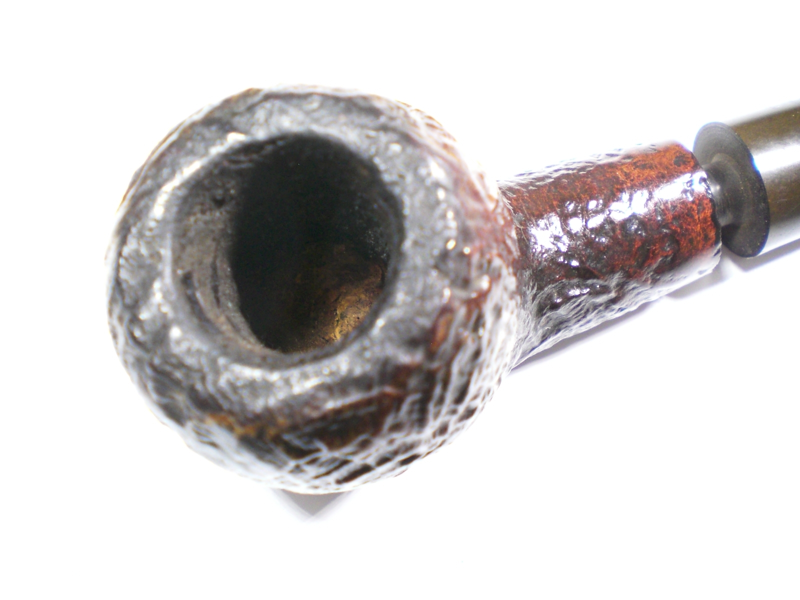 I reamed the bowl and found an interior in great shape. I used some distilled water and a little alcohol to remove the tar buildup on the bowl top. The pipe was then soaked with sea salt and alcohol. There were a few spots of lifted stain on the bowl (from its previous use/life). I used some Feiblings Medium Brown stain, at full strength, to touch up those areas.