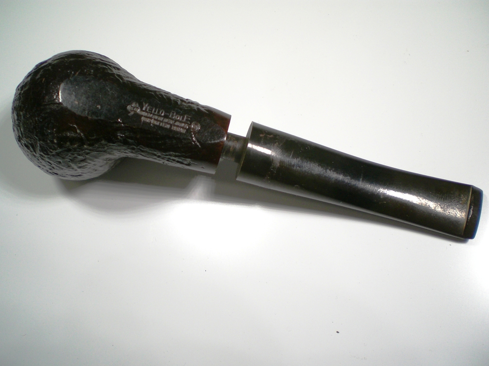 I’ve worked on a few Yello Bole pipes owned by a forum friend, but until now, I hadn’t found one of my own. I spied this one at a Pennsylvania flea market that I visit a few times per year. One vendor always has some older Kaywoodie. Last week, I found this Yello Bole in the case.