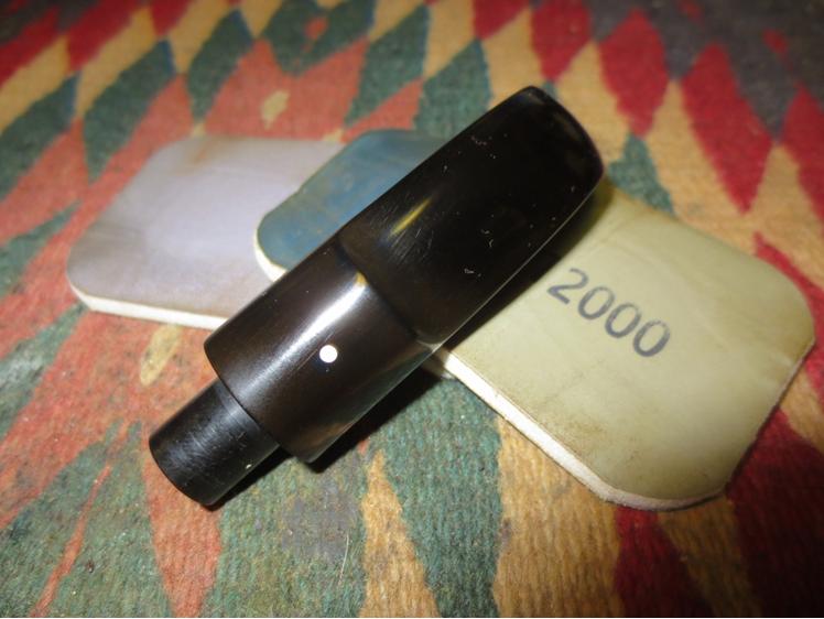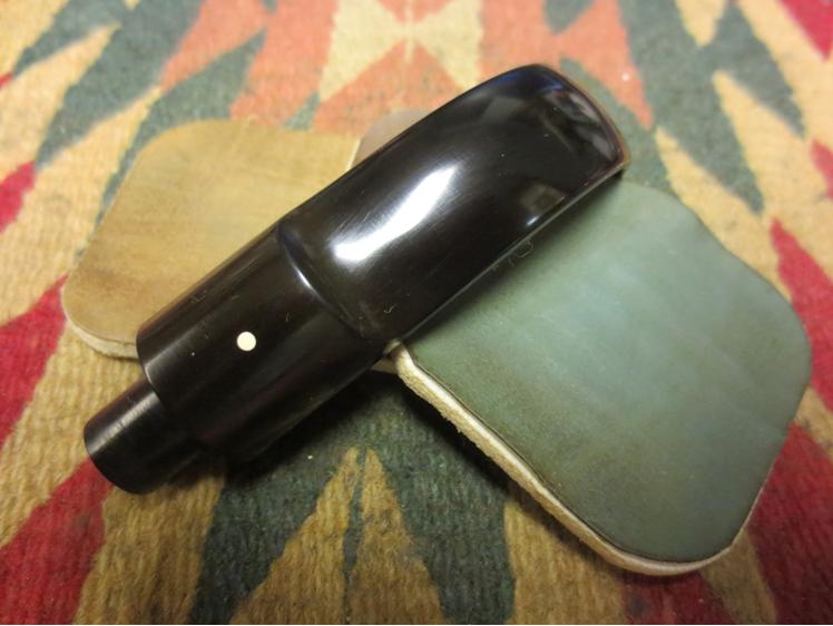 Then it was time to polish it with the micromesh sanding pads. I wet sanded with 1500-2400 grit pads and dry sanded with 3200-12,000 grit pads. I rubbed the stem down with Obsidian Oil between each set of three pads. I buffed the stem with red Tripoli after I finished with the 2400 grit pad and with White Diamond after the 12,000 grit pad.