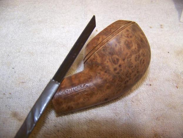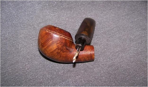 The movie was one of Hitchcock’s greatest and a favorite of mine. How could it not be, with the legendary detective novelist Raymond Chandler as the top word-man? But this is not a blog about swapping murders. It does concern the swapping of a bit, however, or to be more accurate, the removal of one from a basic Peterson’s System Standard in my collection of pipes awaiting more extreme repair, and which won’t be missed before it can be mended, to use for the William Demuth Co. Wellington System Billiard.