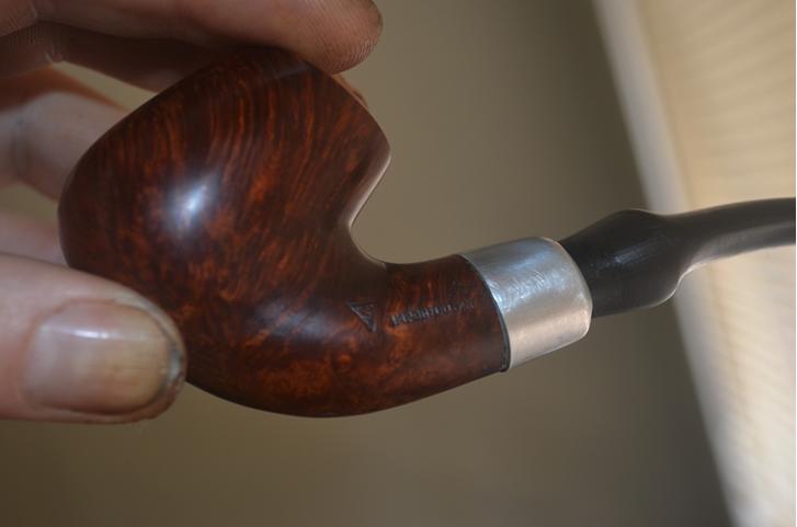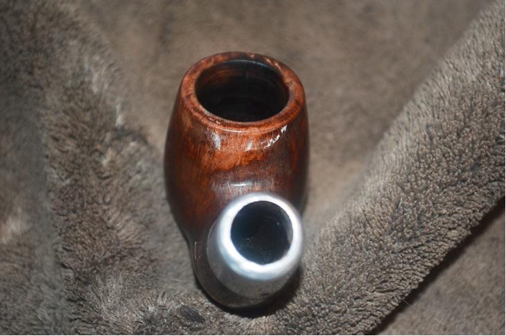 Leaving the bowl and shank for about 10 minutes in the alcohol and time enough to dry, I reamed and sanded the chamber to the smoothness of a chamois cloth and retorted the pipe using the bit from my own Peterson’s System Standard. Starting with super fine 0000 steel wool, then micromesh every step from 1500-4000, the wood and steel band had a nice natural sheen.