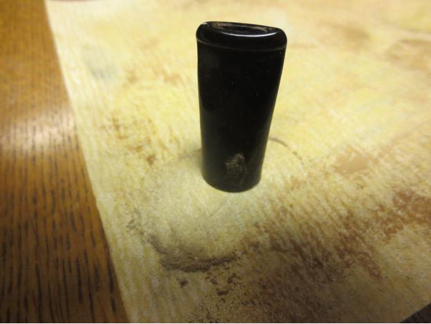 The stem is Lucite and the original tenon was an integral part of the stem. I did not have any Lucite tenon and also no Delrin tenons. So once again I decided to do some improvisation. I turned down the tenon on an old thin vulcanite stem that I had in my stem can until it was a snug fit in the mortise of the shank. I wanted it to sit as deeply as the previous tenon so I turned it down accordingly with the Dremel and sanding drum. When the fit was correct I left it in place in the shank and carefully cut off the stem with a hacksaw. I left enough of the new tenon to sit in the hole I would drill in the stem face.