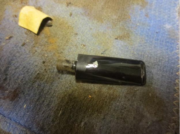 I used the Dremel and sanding drum to take off the majority of the remaining broken tenon on the stem itself. I faced it on the topping board with 220 grit sandpaper until it was flat against the rest of the stem face.