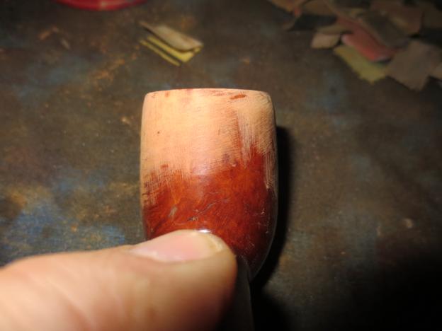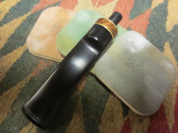 “…LJ Handmade pipes are available in several finishes. All LJ Handmade smooth finished are hand sanded to a satin smooth finish, stained, and liberally coated with Carnauba Wax. I use traditional Aniline stains on my pipes in different colors and combinations. Additionally, many times I use LJ Custom Stain that I developed and have used for many years. It is an alcohol based stain but is not an Aniline stain. The stain is light in color and very durable. I like this stain very much and use it often.”