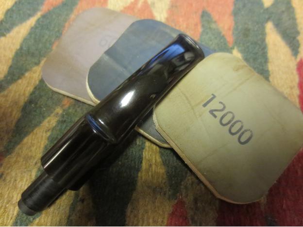 The stem did not need a lot of work to clean off the oxidation. I wet sanded the stem with 1500-2400 grit micromesh sanding pads. I rubbed it down with Obsidian Oil after the third pad and then continued to dry sand the stem with 3200-4000 grit pads. I rubbed it down again with another coat of oil and let it dry.