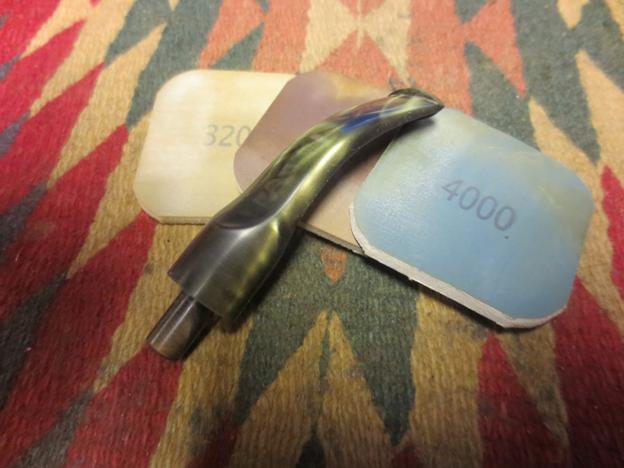 I scrubbed out the interior of the bowl and the shank with pipe cleaners, cotton swabs and alcohol to remove the tar and oil. I did the same with the stem and the chamfered tenon end.
