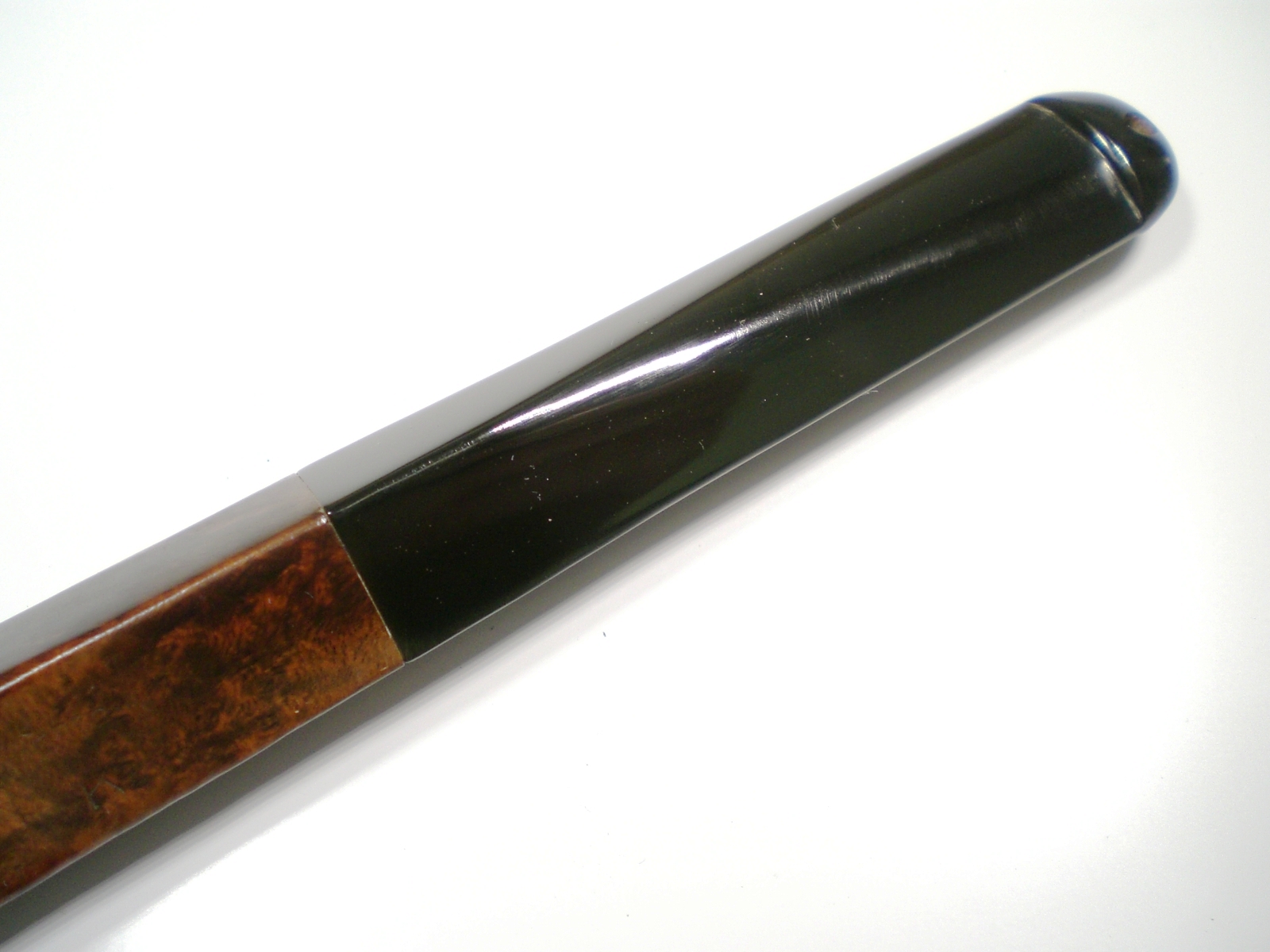 I tried to lift some of the dents with steam, but most were too deep. So, the briar was polished with white diamond and several coats of carnuba wax. The stem was soaked in a mild mixture of Oxy-Clean (dry powder mix) and then sanded with 600, 1500 and 2000 grit wet paper. 8,000 and 12,000 micromesh sheets were used next followed by a polishing with White Diamond rouge and then Meguiars Plastic Polish.