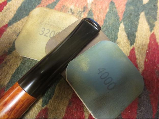 I lightly sanded the entire surface of the stem with 600-grit and 1200-grit paper to smooth it out and remove the seams and molding artifacts from the sides. Then, I polished the stem with Micro-Mesh pads 1500-grit through 12000-grit and used a drop of mineral oil to lubricate the stem between every three grits.