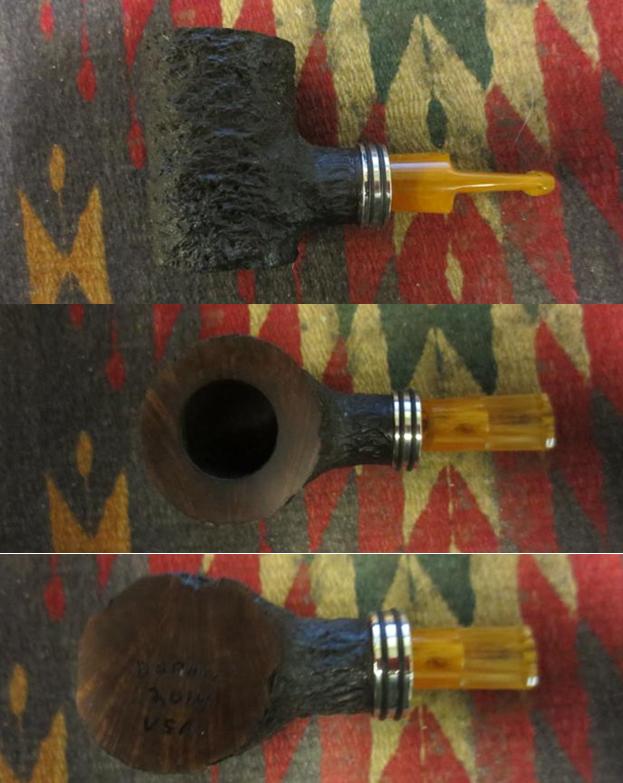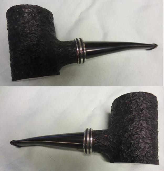 Doran6 I reamed the bowl to take back the uneven cake. I scrubbed the rusticated bowl and the tars on the rim with a tooth brush and Murphy’s Oil Soap. I rinsed the bowl with water and then dried it off with a soft cloth. I further worked on the darkening of the rim with a cotton pad and saliva until I had the majority of it removed. I also scrubbed the bottom of the bowl with the cotton pad and saliva as well.Doran7 I buffed the rustication with a shoe brush to give it a slight shine.Doran8 I gave the bowl a light wipe down with olive oil and hand buffed it with the shoe brush to raise the shine. The stem was in very good shape with no tooth chatter or oxidation so it needed only to be cleaned and polished. I buffed the rim and the base along with the stem with Red Tripoli, White Diamond and Blue Diamond. I then gave the rim, base and stem several coats of carnauba wax and buffed them with a soft flannel buff. I finished by hand buffing with a microfibre cloth. The finished pipe is shown below. I like the new look with the longer stem. The pipe now works as a sitter and balances on the desk with no issues. What do you think?Doran9