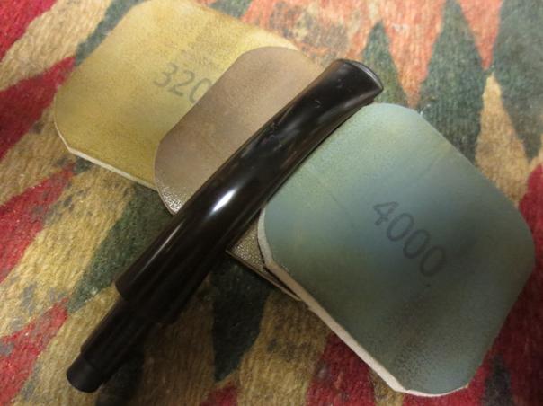 I wet sanded the stem with 1500-2400 grit micromesh pads and rubbed stem down with Obsidian Oil. I dry sanded with 3200-4000 grit pads and then buffed it with White Diamond on the buffing wheel. I gave it another coat of oil and then sanded with 6000-12000 grit pads. I gave it a final coat of Obsidian Oil and let it dry.