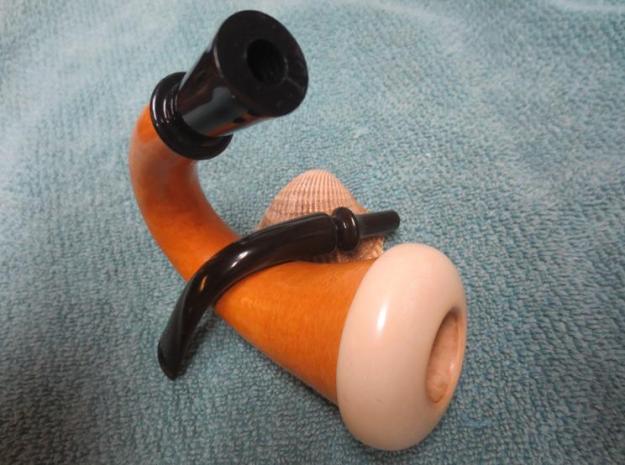 The inside of the gourd had been cleaned and showed little wear and tear. There was a new cork gasket on the top inner edge of the gourd. It was dry and hard but undamaged. The shank extension had been well drilled as a mortise for the push tenon stem. It was plastic and was in excellent condition.