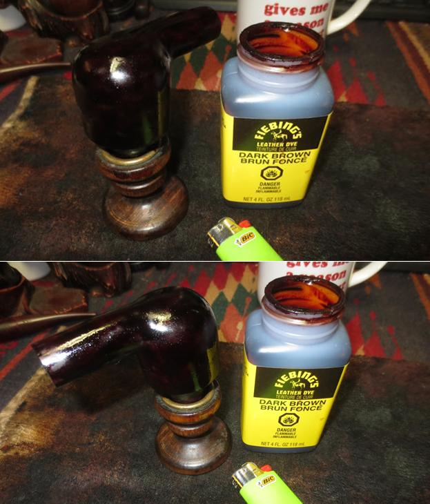 I sanded the bowl with 1500-4000 grit micromesh sanding pads in preparation for staining the bowl. I planned on giving the pipe a contrast stain so I started with a dark brown aniline based stain. I applied the stain, flamed it and repeated the process until I was satisfied with the coverage.