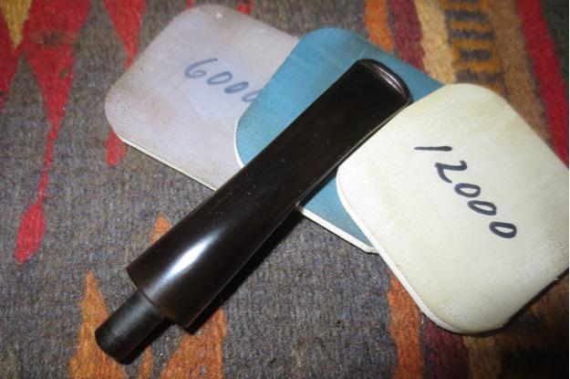 I sanded the oxidation and tooth chatter off the stem with 220 grit sandpaper. I was able to remove all of the chatter and even the tooth marks as they were not too deep in the vulcanite.