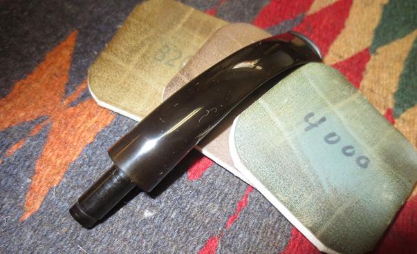 I polished the briar with micromesh sanding pads as well. I wet sanded it with 1500-2400 grit sanding pads and wiped it down with a damp cotton pad. I dry sanded it with 3200-12000 grit pads and wiped it down after each set of three sanding pads.