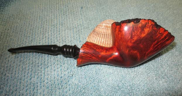 After polishing with the final three pads (6000-12000 grit) the briar really shined and the fills though still present did not stick out so much.