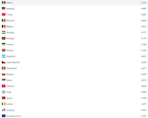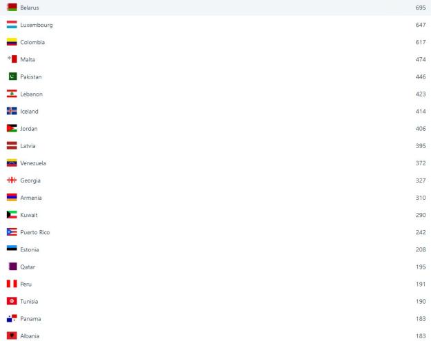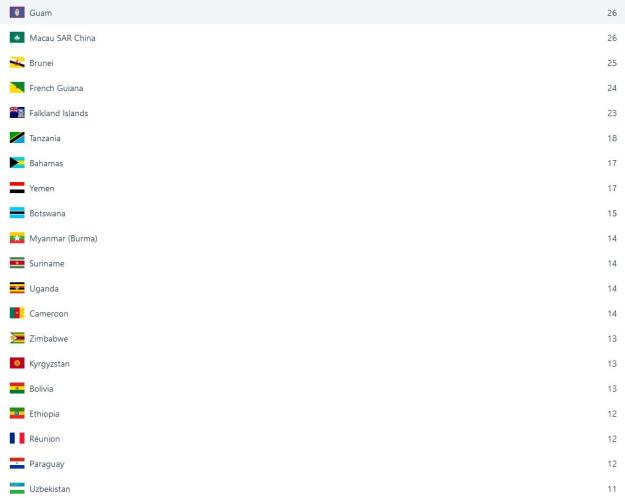 Another interesting stat is to see the global coverage of viewers of the blog. The first graphic below shows the coverage on a flat map of the world. Following that, I have copied a list of the various the countries that are represented in the views by number of views from highest to lowest (United States with 659,593 views to Micronesia with 1 view).