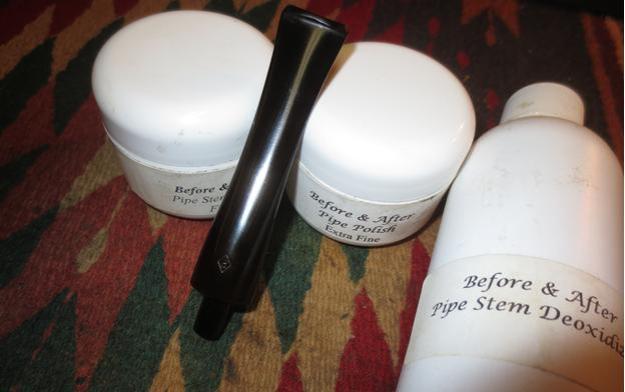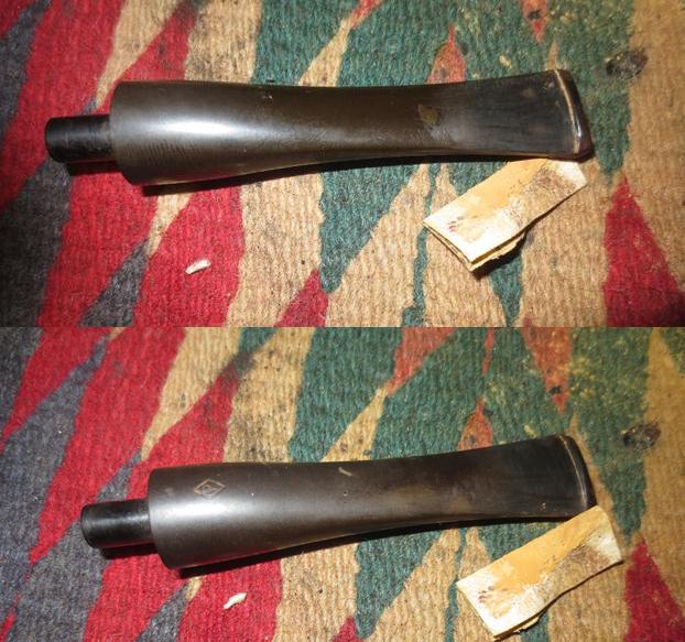 I put the stem on the pipe before taking the photo of the stem after I had finished sanding with the last three pads. The new stain looked really good with the yellow Lucite stem. The contrast worked really well on my opinion.