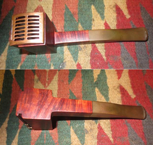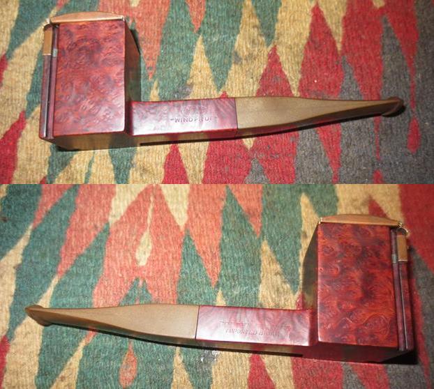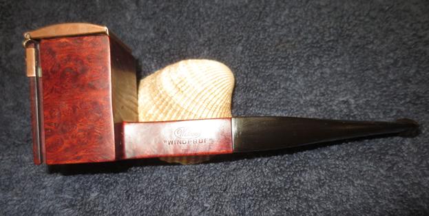 My brother sent me a link to a Weber “Windpruf” pipe. I have had a few different windproof pipes in the past but most had a domed top that swiveled on a pin or a screw in the back of the rim top. The cap rotated to either side for lighting and tamping. This one was different and when I went on-line to look at it I was hooked. It was stamped on the left side of the shank Weber in an oval over “Windpruf” and on the right side it read Golden Walnut over Imported Briar. The pipe was a square panel. The right and left sides of the front of the bowl were grooved and a copper coloured wind cap was anchored in those grooves. The lid was spring loaded on both the base on the bowl front and on the cap itself. It sat on top of the bowl rim and let air flow into the bowl from the top and the sides. The stem was oxidized but otherwise undamaged by tooth chatter or marks on either side. The first seven photos come from the EBay seller. The briar looked pretty clean in the photos and the copper cap was in good shape.