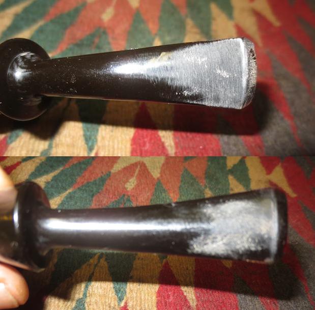 The next photos that my brother took show the condition of the stem far better than the seller’s photos had. It had a lot of tooth chatter and dents on both the top and underside near the button extending about one inch up the stem.