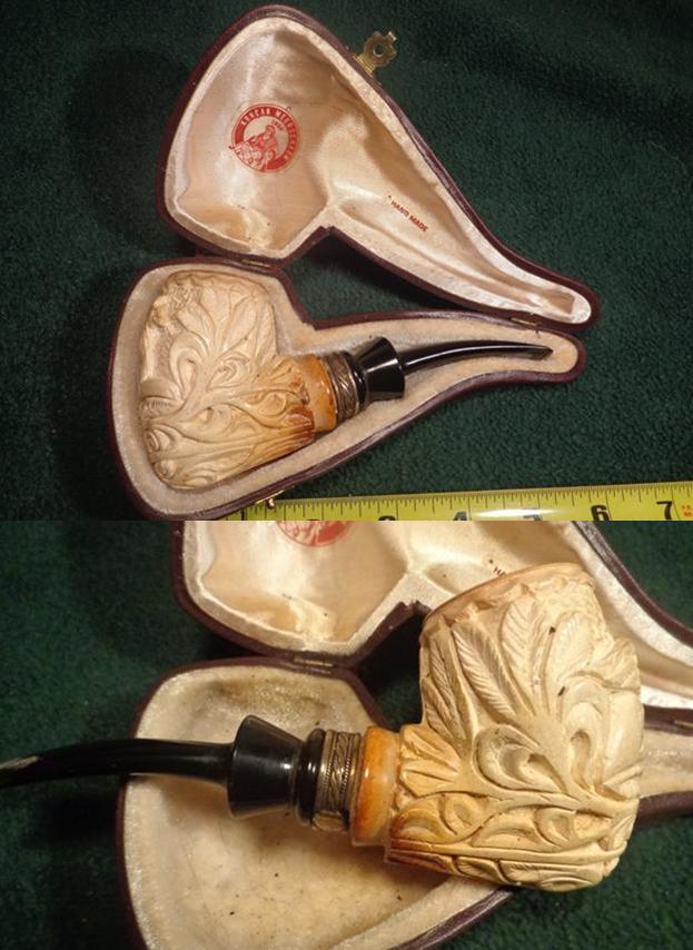 The next pipe I chose to work on today is a nicely carved meerschaum by Koncak. I have never really collected meerschaum pipes so I do not have much knowledge of the various makers or carvers. I did some looking in some of the references I have here in the shop and found that Koncak is a Turkish meerschaum pipe brand. The meerschaum factory was founded by Ekrem Koncak in 1934 in Eskiehir, Turkey. It is one of that country’s oldest producing meerschaum pipe factories. They carve some highly unusual shapes. In 1974, Ekrem was succeeded by his son, Sadat, and in 1980 his daughter, Nurham took over the running of the company. In the meantime, Sedat Koncak bought the Austrian brand Bauer, and the two companies have maintained close commercial ties (from Pipes, Artisans and Trademarks, by José Manuel Lopes).