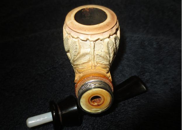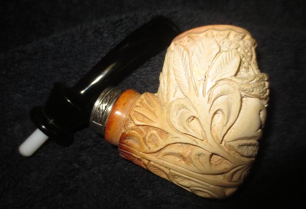 The next two photos show the stem and band work on the pipe. The silver band is quite beautiful and really stands out against the colouring meerschaum shank.