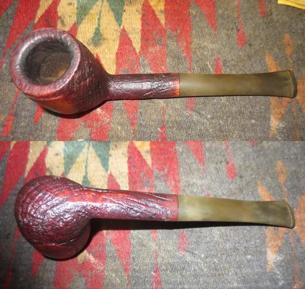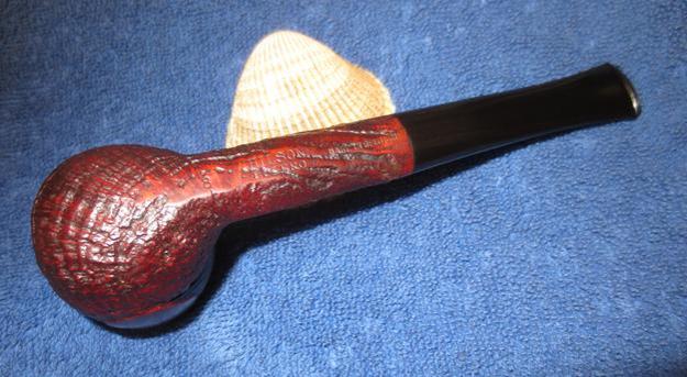 It was definitely newer than many of the pipes we found that day. The photos tell the story of its condition but I will summarize it here. The bowl had a fairly thick cake with lava overflowing onto the rim. It had a nice sandblast finish that makes me think of Stanwell pipes that must be from the same time period. The finish appeared to be in good shape other than the dirt and grime of the years in the grooves and grain of the blast. The stem was slightly oxidized and there was tooth chatter on both the top and underside of the stem near the button.