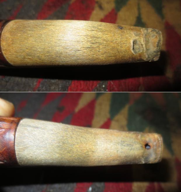 The stem was in rough condition as mentioned above. The top of the stem had a lot of tooth chatter and the button was chewed down. There was a small hole in the middle of the stem just below the button. The underside of the stem also showed a lot of tooth chatter and bite marks.