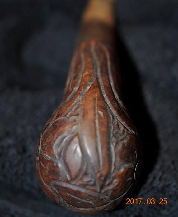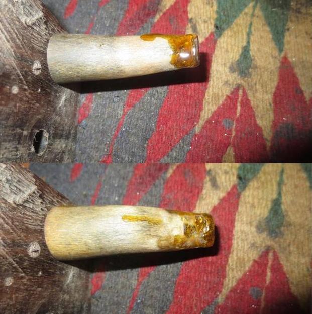 Once the repair had cured I used a needle file on both sides of the stem to bring the repair even with the surface of the stem. I sanded the repaired areas with 220 grit sandpaper to smooth them out and blend them into the surface of the stem. The photos below tell the story.