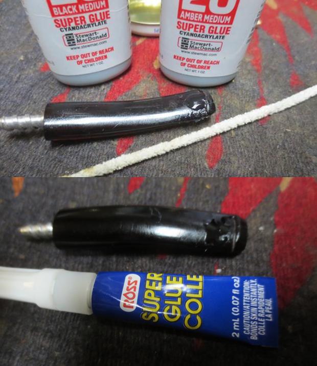 While the glue set on the shank I set it aside and worked on the stem. I decided to repair the tooth marks on the top and bite-through on the underside of the stem. I put a pipe cleaner greased with Vaseline in the orific airway in the button and slide it under the bite-through. I mixed some Black and Amber super glue together and filled in the hole on the stem. I filled in the tooth marks on the top of the stem with clear super glue. I sprayed the stem surfaces with accelerator to speed up the hardening of the repair. I pulled the pipe cleaner out of the stem so that it would not stick in the airway.