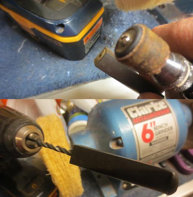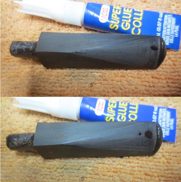 I set the stem aside for awhile and worked on the bowl. I wiped down the area around the crack in the shank and drilled small microdrill bit holes in the end of each of them. I fount that on the right side there was a third trail of crack so I drilled it as well. I filled in the drill holes with clear super glue. I layered in the glue to a bubble and let it dry.