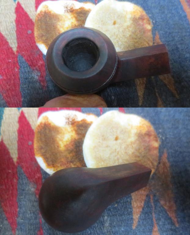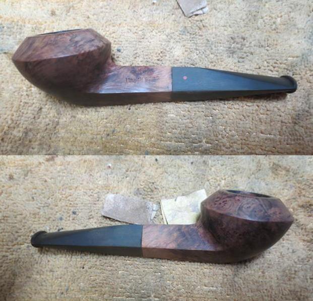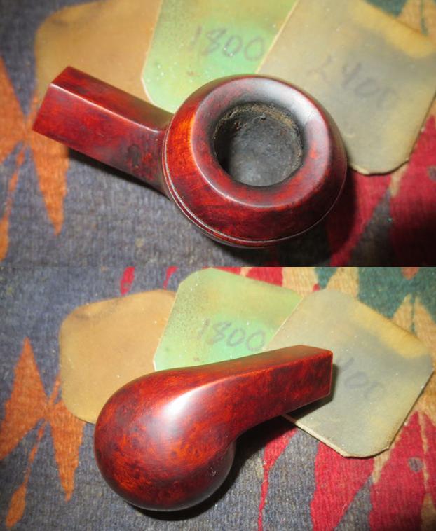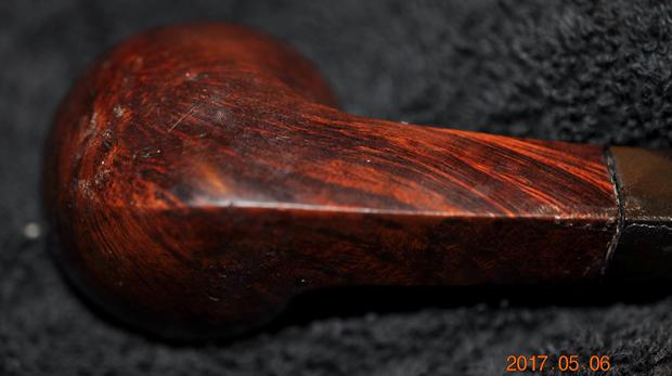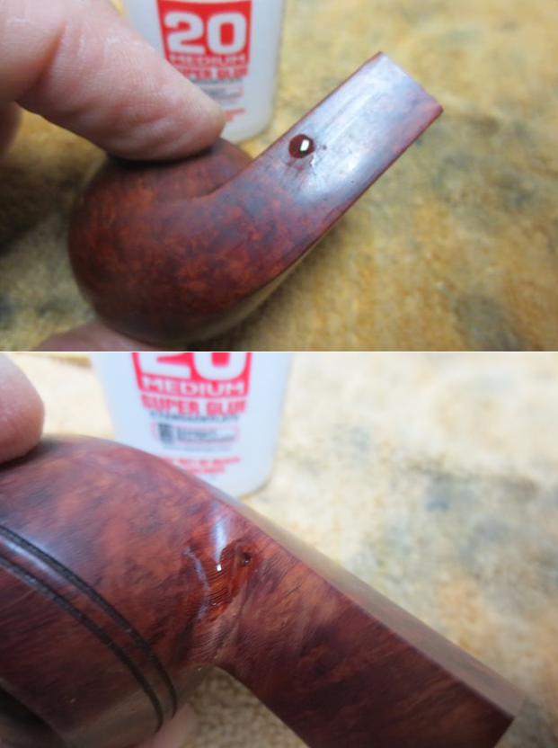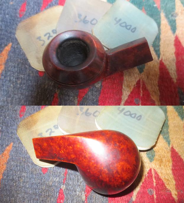 I used a dark brown stain pen to touch up the repaired and sanded areas on the shank and on the beveled rim top.