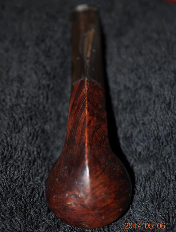 He sent a photo of the crack at the bowl/shank junction and noted that he had glued it but was not happy with the way it looked. The photo only shows the crack on the left side of the stem but it was also on the right side. He wanted me to clean it up and stabilize it so that it would not crack any further. That should not be too much of an issue.