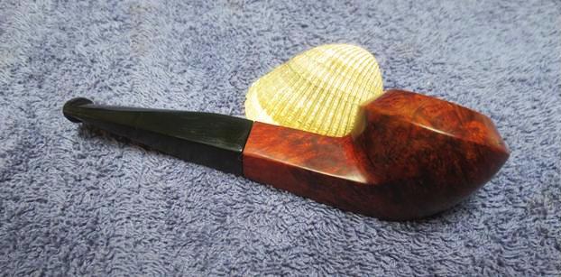 I put the stem back on the bowl and buffed the pipe with Blue Diamond. I kept a light touch in buffing the underside of the stem and button as I did not want to do any harm to the repair. I buffed the repairs on the shank normally and the rest of the pipe the same way. I gave the bowl and stem multiple coats of carnauba wax and buffed it with a clean buffing pad to raise the shine in the briar and vulcanite. I hand buffed it with a microfiber cloth to deepen the shine. The pipe is almost ready to go back to the pipe man who sent it to me. It will go out later this week after I do a last minute check up on the entire pipe. I want it to go back to him in good condition. Thanks for walking with me through this repair and restoration project.