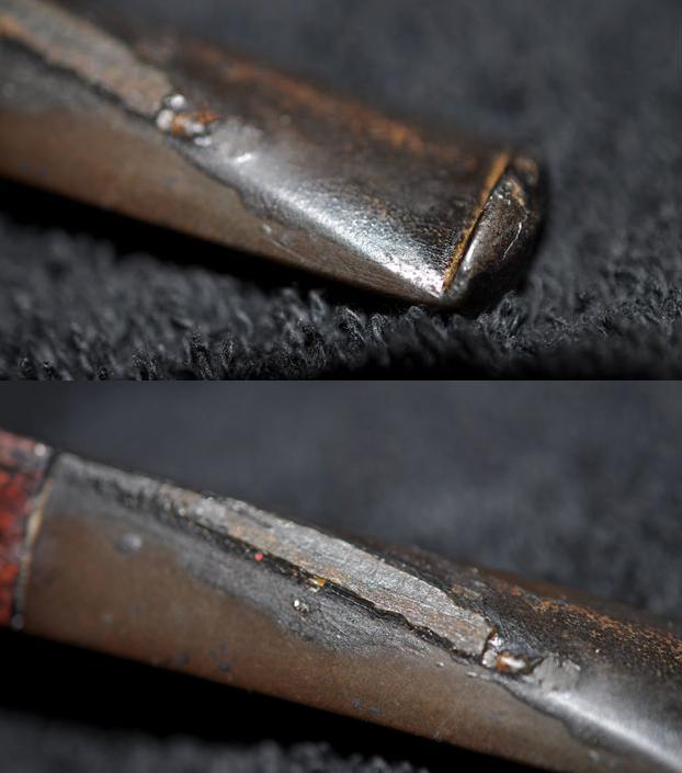 I took some photos of the stem to show the oxidation and the damaged area on the underside at the button.