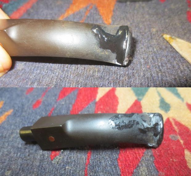 He sent along a photo of the rim top showed that the outer edge of the bowl had some small nicks in it that needed to be cleaned up. The surface of the beveled rim had some lava overflow and was darkened in several places around the top and the inner edge of the bowl. It was hard to tell for certain from the photos but there was probably some wear on the top and inner edges.