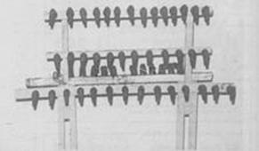 Ret26 ← Previous Next → After the pipes are stained by dipping them in a solution, they are dried in this fashion. This rack holds over 50 pipes.