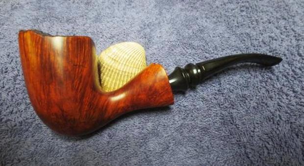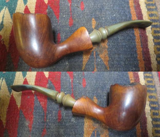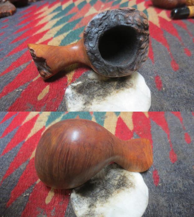 This old freehand was in the box of pipes that came from my friend Steve in Dawson Creek. It is one of the lot he sent for me to chip away at in my spare time. Today was the day for that chipping away to happen. I pulled out five of the remaining seven pipes and worked on all of them today. This one reminds me of a 70s era freehand. It is a lot like one of the old ones that I had years ago. It is stamped on the underside of the shank next to the stem shank junction with the letters CHP-X over the number 3. It is a large freehand with a chair leg style stem. The bowl is heavily caked and there is overflow of tars and cake onto the plateau of the rim top. The plateau on the top side of the shank is also filled with grime and grit. The finish on the bowl is worn and dirty. I it was originally a virgin finish or if not possibly oiled. The stem is oxidized and has light tooth chatter. From my research this pipe was made in the United States by Michael Kabik before 1973. It was named after Chuck Holiday who was a pipe maker that Kabik bought his shop from. The photos show the condition of the pipe before I began the restoration work.