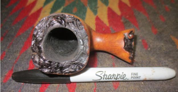 I reamed the bowl with a PipNet Reamer starting with the smallest cutting head and working my way up to the second head which was the same size as the bowl. I cleaned up the reaming with a Savinelli Fitsall Pipe Knife. I took the cake back to bare briar. I used a brass bristle brush to clean up the lava buildup on the rim top. I scrubbed the rim until it was debris free.