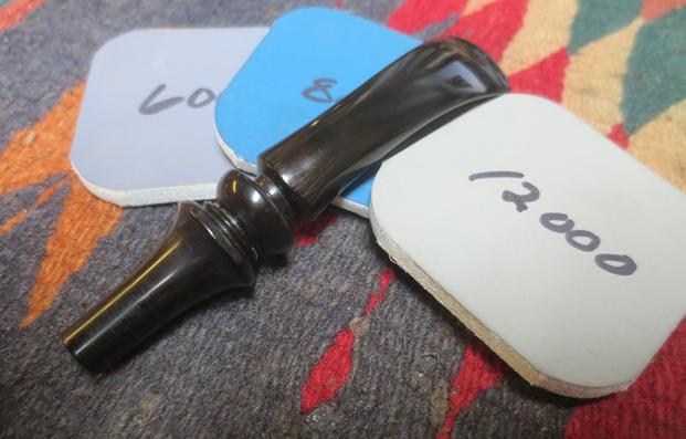 I polished the stem with micromesh sanding pads – wet sanding with 1500-2400 grit pads (I opened a new package for this pipe) and dry sanding with 3200-12000 grit pads. I rubbed the stem down with Obsidian Oil after each pad. After the 12000 grit pad I gave it another coat of oil and set it aside to dry.