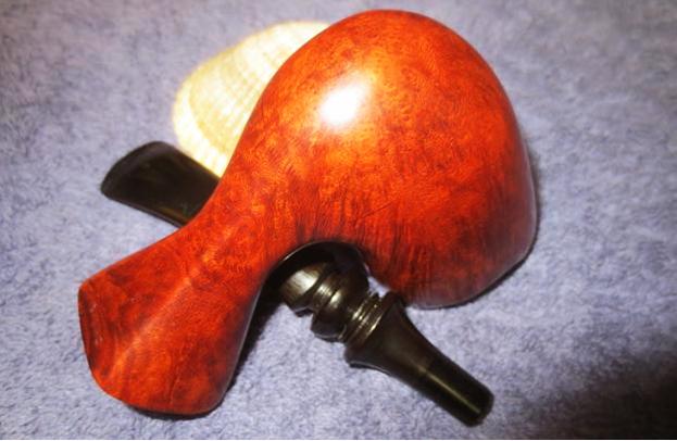 I put the stem on the bowl and buffed the pipe with Blue Diamond on the buffing wheel. I gave the bowl several coats of carnauba wax and buffed the pipe with a clean buffing pad to raise the shine. I hand buffed it with a microfibre cloth to deepen the shine. The finished pipe is shown in the photos below. It is the third of pipe that I have restored for Steve from this last batch. It is an interesting freehand with some nice grain on it. The stem repair to the hairline crack looks pretty good and should hold up well. I will be putting an extra stem in the package for Steve as well. I think he is going to love this one. Steve, if you are reading this I hope you enjoy this beauty. It will be on its way to you very soon. Thanks for looking.