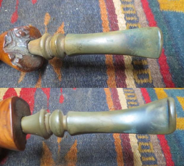 The stem was heavily oxidized and the button on the top side of the stem was worn. There were tooth marks and tooth chatter on both sides of the stem near the button. The grooves of the chair leg stem were very oxidized.