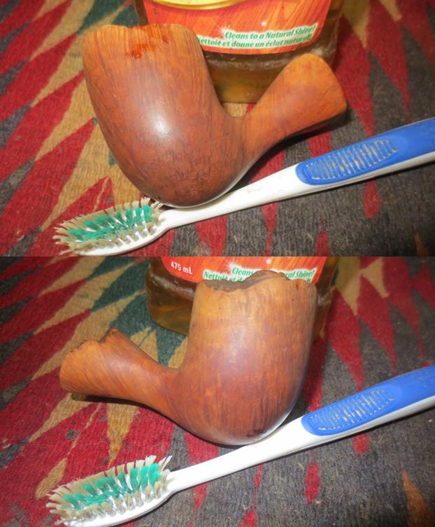 I scrubbed the exterior of the bowl and shank with Murphy’s Oil Soap and scrubbed the plateau top on the rim and the end of the shank using a tooth brush. I rinsed the bowl under running water and continued to scrub it until it was clean and the plateau was clearly defined.