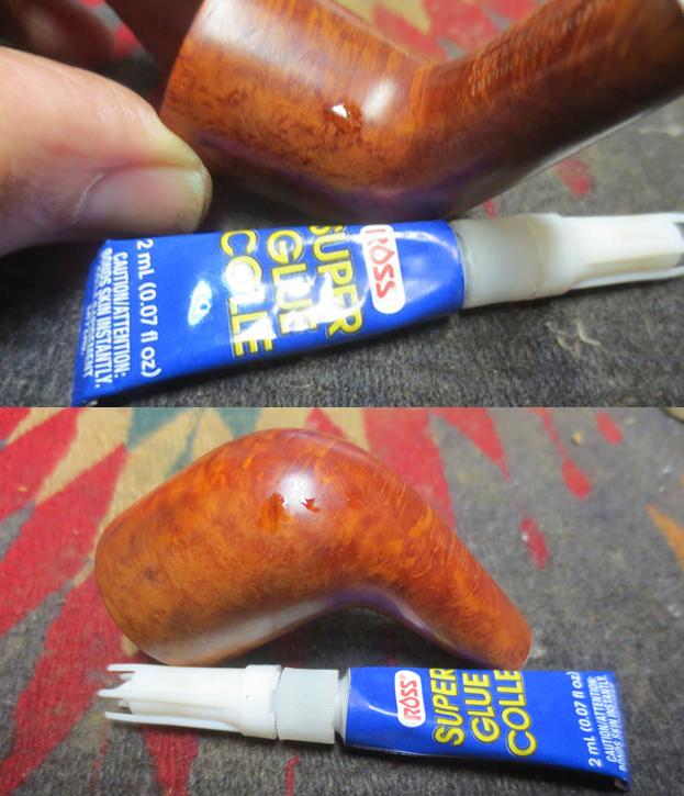 I used clear super glue to repair the damage on the back and the front of the bowl. I filled in the areas with the glue and set the bowl aside to dry. When the repairs had cured I sanded the areas with 220 grit sandpaper to blend them into the surface of the briar. I polished the areas with micromesh sanding pads – wet sanding with 1500-2400 grit pads. I wiped the bowl down with a damp cloth to remove the sanding dust.