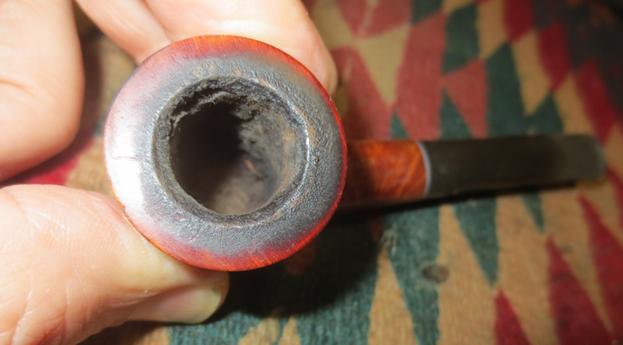 I reamed the bowl with a PipNet pipe reamer starting with the smallest cutting head and working up to the second cutting head. I took the cake back to bare briar. I cleaned it up with a Savinelli Fitsall Pipe Knife. I scraped the top of the rim with the pen knife to take as much of the lava off as possible. I sanded it with 220 grit sandpaper and a 1500 grit micromesh sanding pad.
