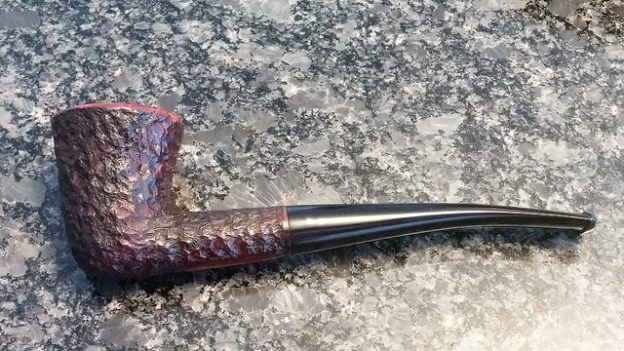I put the stem back on the bowl and buffed the entire pipe with Blue Diamond once again. I gave the bowl multiple coats of Conservator’s Wax and the stem multiple coats of carnauba. I buffed the pipe with a clean buffing pad to raise the shine. I hand buffed the pipe with a microfibre cloth to deepen the shine. The photos below show the finished pipe. The reflection of the polished brass band on the black of the vulcanite stem looks really good. The contrast of the blacks and browns in sandblast finish are really quite stunning. The dimensions of this pipe are Length: 6 inches, Height: 1 ¾ inches, Bowl diameter: 1 ¼ inches at the top of the rim, Chamber diameter: 7/8 inches. It a great looking pipe and one that will make a good smoker. It is drilled for a 9mm filter but can easily be used without one or a converter can be purchased from various online sources to slide into the 9mm tenon and change it into a regular pipe. If you are interested in this pipe send me an email to slaug@uniserve.com or a message on Facebook. I will be putting it on the rebornpipes store later today. Thanks for looking.