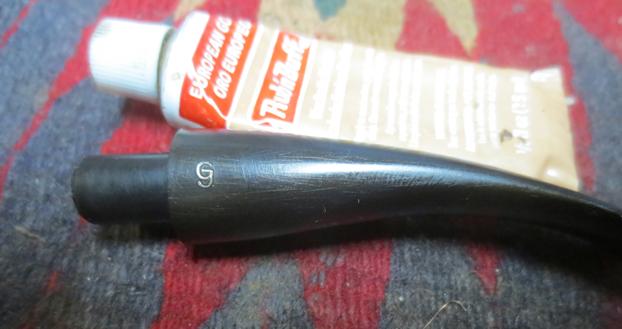 I polished the stem with micromesh sanding pads – wet sanding it with 1500-2400 grit pads. After the first set of three pads I used some Rub’n Buff European Gold to fill in the GJ stamp on the side of the stem. I applied it with a cotton pad and rubbed off the excess. Once it dried I used the 3200-12000 grit pads to dry sand the stem. After each micromesh sanding pad I rubbed the stem down with Obsidian Oil to enliven the vulcanite. After the 12000 grit pad I set the stem aside to dry.