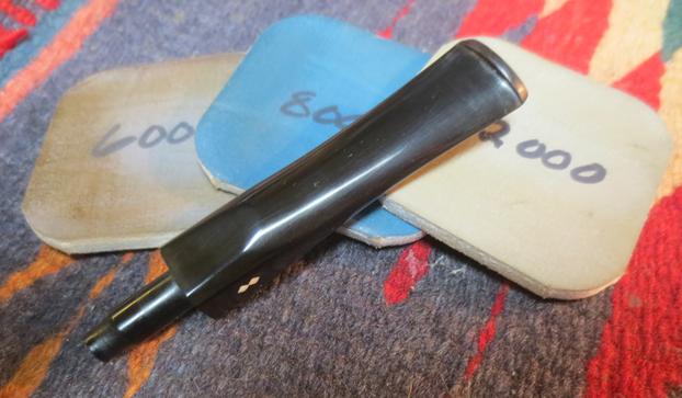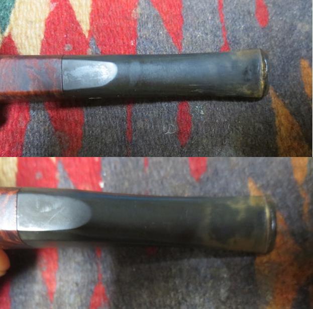 I “painted” the stem with the flame of a lighter to lift the tooth marks and dents in the rubber. I was able to raise the dents considerably. Some of them disappeared. Others would need to be sanded out and repaired. The stem certainly looked better after heating.